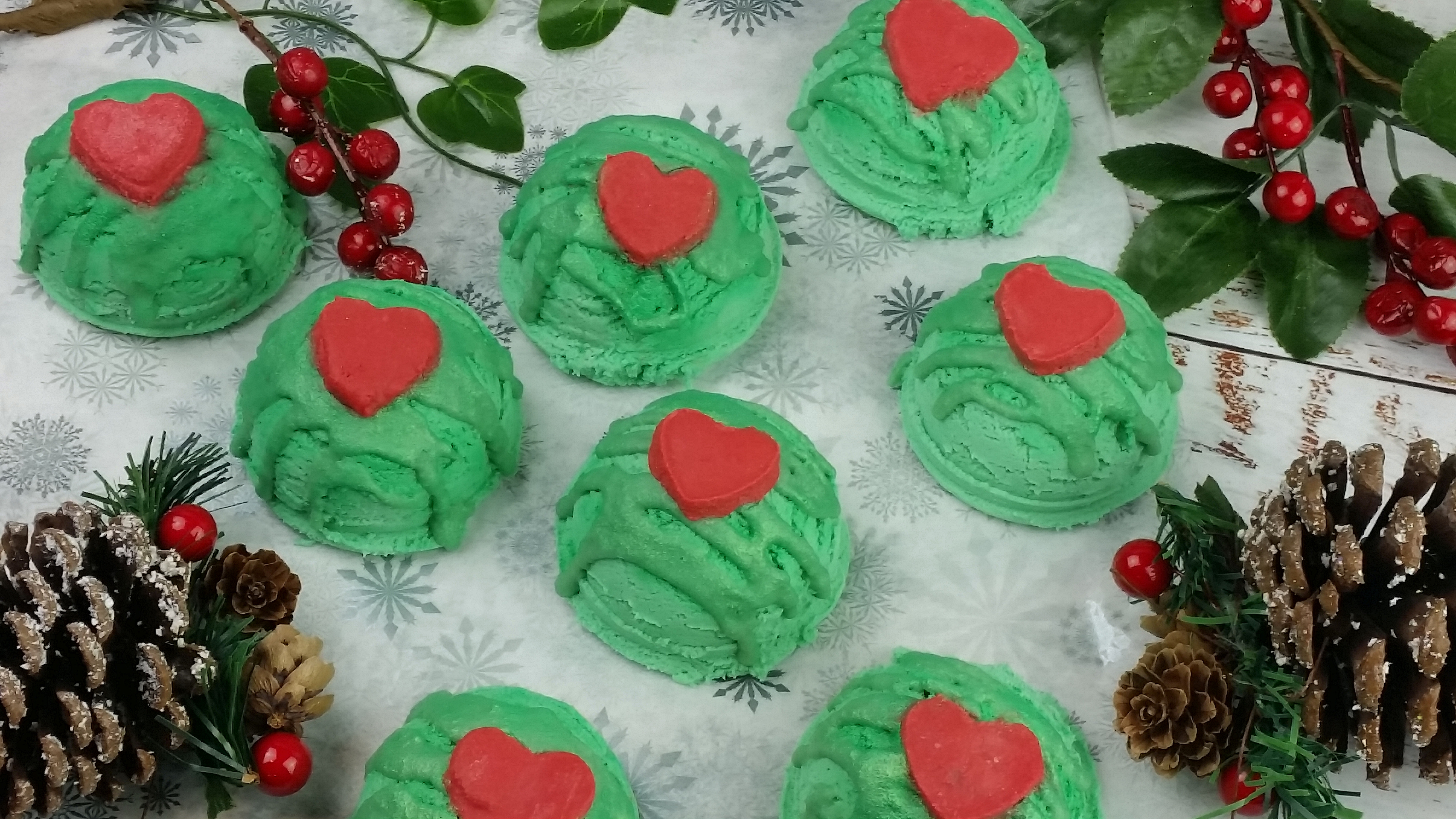 Our Merry Grinchmas! Bubble Bath Truffle, is inspired by the well loved, classic, feel-good, Dr Seuss christmas story - because who doesn't love the Grinch! This bubble bath truffle is just too cute with it's bright green colour and red heart. It's fragrance, is a comforting mix of Cinnamon Sugar, Mocha, Thyme, Nutmeg, and Candied Ginger. A perfect, warm and cozy aroma for the holidays!